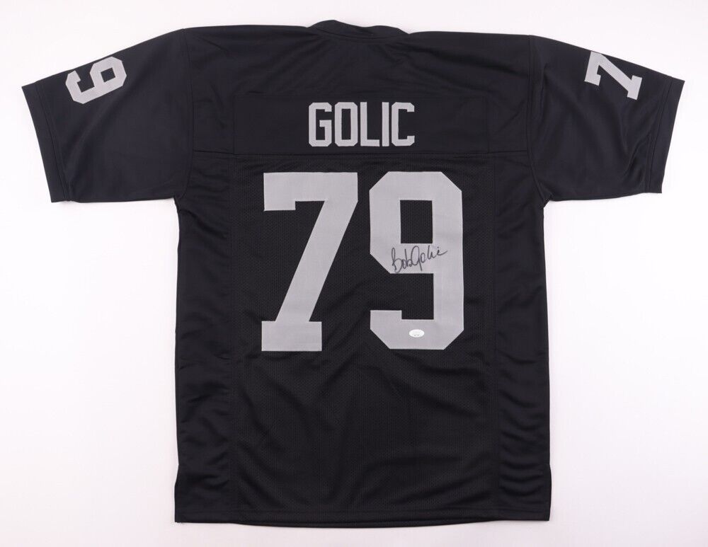Custom on-field style jersey. Everything sewn on, size XL. Hand-signed by Bob Golic.The autograph(s) includes an official James Spence Authentication (JSA) hologram and matching COA for authenticity purposes. The signing of this item was witnessed by JSA.Authentication: JSA COA