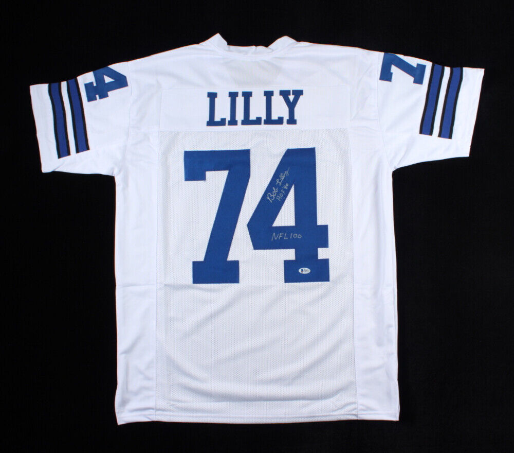 Custom on-field style jersey. Everything sewn on, size XL. Hand-signed by Bob Lilly (HOF).The lot / autograph(s) includes an official Beckett Authentication Services serially-numbered hologram and matching COA for authenticity purposes. Authentication: Beckett COA
