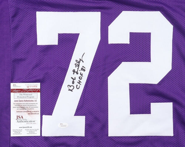 Custom on-field style jersey. Everything sewn on, size adult XL. Hand-signed and inscribed by Bob Lilly (Dallas Cowboys, HOF).The autograph(s) includes an official James Spence Authentication (JSA) hologram and matching COA for authenticity purposes. The signing of this item was witnessed by JSA.Authentication: JSA COA