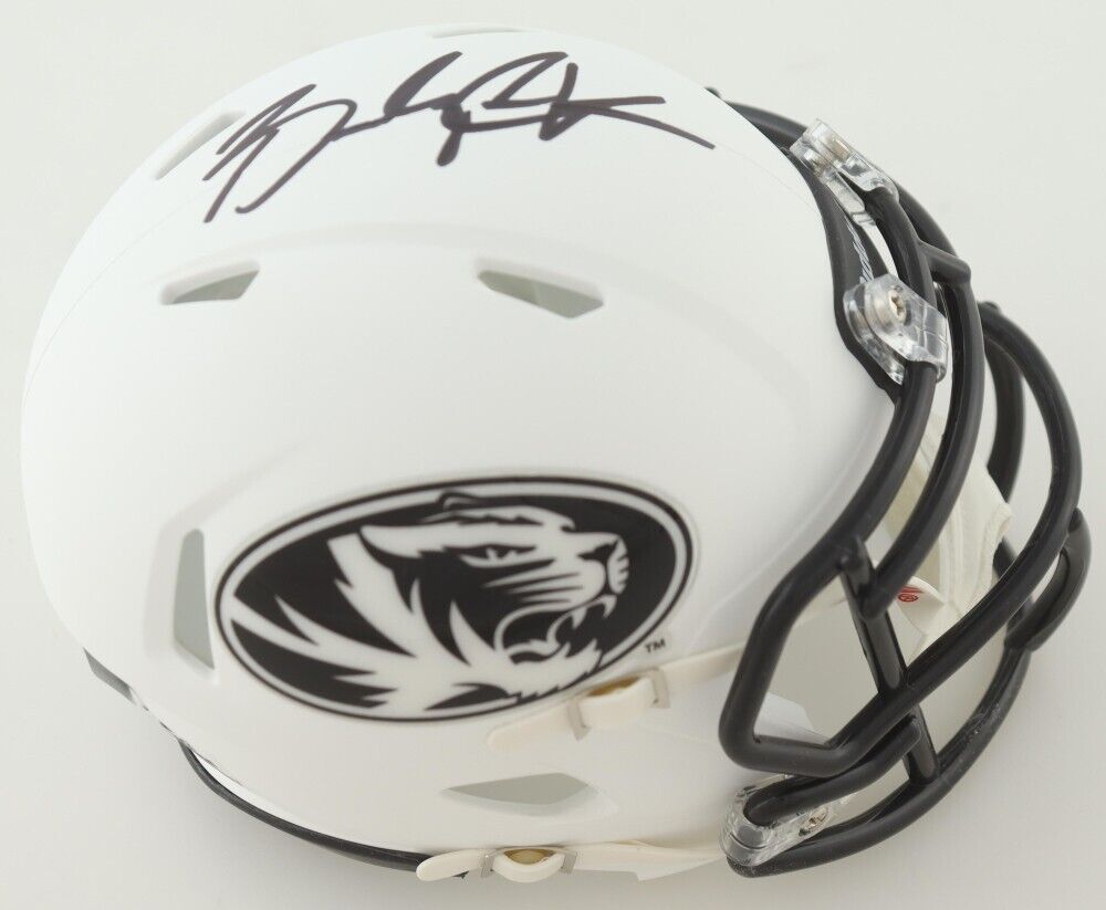 Riddell Missouri Tigers speed mini helmet has been hand-signed by Brady Cook.The autograph includes an official Beckett Authentication Services serially numbered hologram for authenticity purposes. The signing of this item was witnessed by Beckett.Authentication: Beckett Hologram