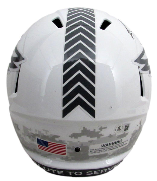 Brandon Graham Signed Philadelphia Eagles White Salute To Service Full Size Replica Helmet. This helmet is authenticated by BAS/Beckett Witness and includes their Tamper-proof Hologram Sticker.