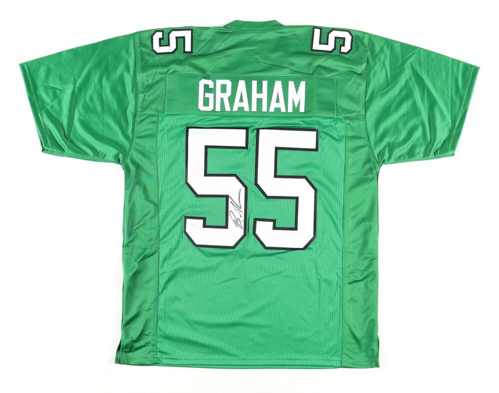 Custom style jersey. Everything sewn on, size XL. Hand-signed by Brandon Graham.The autograph includes an official James Spence Authentication (JSA) hologram and matching COA for authenticity purposes. The signing of this item was witnessed by JSA.Authentication: JSA COA