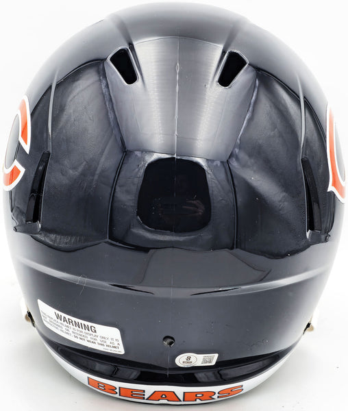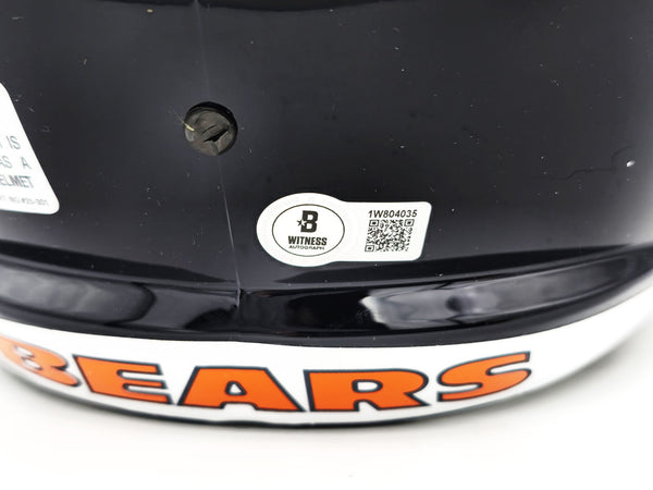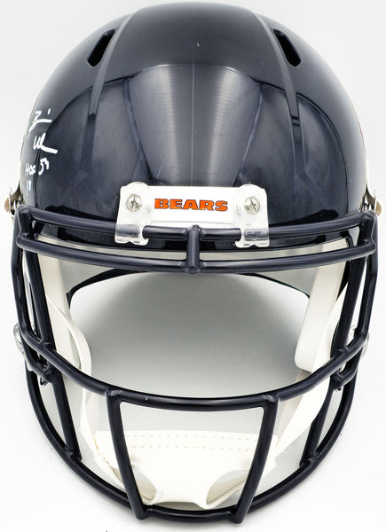 This is a Chicago Bears Blue Full Size Speed Replica Helmet that has been hand signed by Brian Urlacher. This item was inscribed "HOF 18." This item has been witnessed and certified authentic by Beckett Authentication (BAS) and comes with their tamper-proof witness sticker.