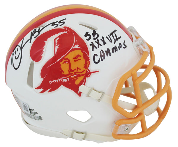 Bucs Derrick Brooks "SB XXXIV Champs" Signed 76-96 TB Speed Mini Helmet BAS Wit