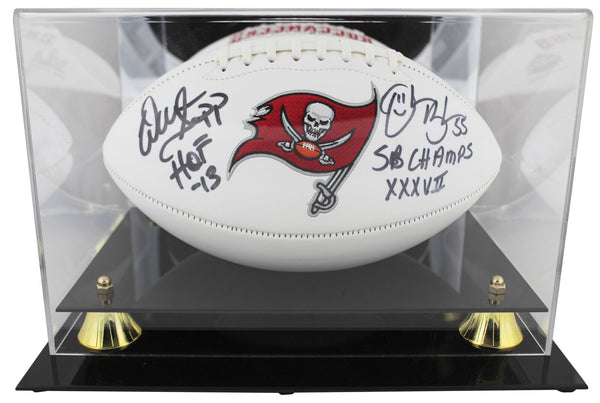 This Autographed White Panel Logo Football W/ Uv Mirrored Back Acrylic Display Case with the inscription of "SB XXXVII Champs (Brooks), HOF 13 (Sapp)" has been Personally Signed by Warren Sapp & Derrick Brooks of the Tampa Bay Buccaneers. This item is 100% Authentic to include a hologram by Beckett Authentication Services. This item will come with an affixed Beckett Authentication Services (BAS) authentication sticker, which includes a scannable QR code to verify authenticity. Please note that Beckett no longer provides serial-numbered COA cards, and the attached BAS sticker will serve as the complete authentication for this item. This is a BAS Witnessed Protection Program item which means a Beckett Authentication Service representative was present when this item was being signed. We conducted an autograph signing with Warren Sapp & Derrick Brooks where multiples of the same item were signed. While the photographs are representative of this item, the size, placement and strength of the signature may vary. Each item is hand signed, therefore, each autograph is unique. This item can be verified through BAS Witnessed.