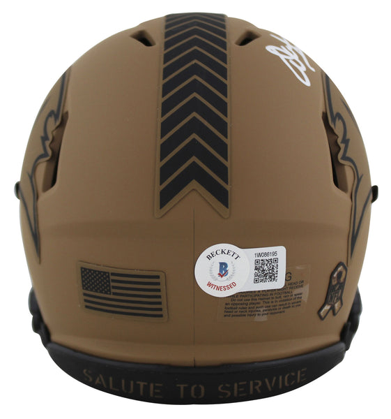 This Autographed Alternate 2023 Salute To Service II Speed Mini Helmet with the inscription of "HOF 13" has been Personally Signed by Warren Sapp of the Tampa Bay Buccaneers. This item is 100% Authentic to include a hologram by Beckett Authentication Services. This item may come with the new Beckett Authentication hologram that has a scannable QR code rather than the traditional COA. If you would like to have a COA, you are welcome to reach out to Beckett for a printed certification once you receive your item. This is a BAS Witnessed Protection Program item which means a Beckett Authentication Service representative was present when this item was being signed. We conducted an autograph signing with Warren Sapp where multiples of the same item were signed. While the photographs are representative of this item, the size, placement and strength of the signature may vary. Each item is hand signed, therefore, each autograph is unique. This item can be verified through BAS Witnessed.