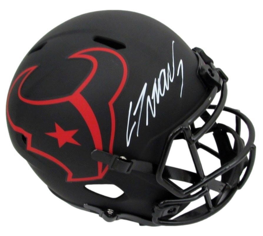 C.J. Stroud Autographed Black Full Size Eclipse Replica Football Helmet Houston Texans. This helmet is authenticated by Fanatics Authentic and includes their Tamper-proof Sticker.