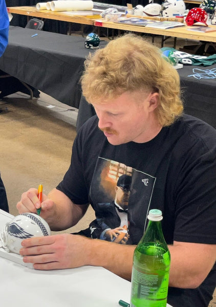 Cam Jurgens Autographed Eagles Mini 2024 Salute to Service Helmet. This helmet is authenticated by PSA/DNA and includes their Tamper-proof Hologram Sticker.