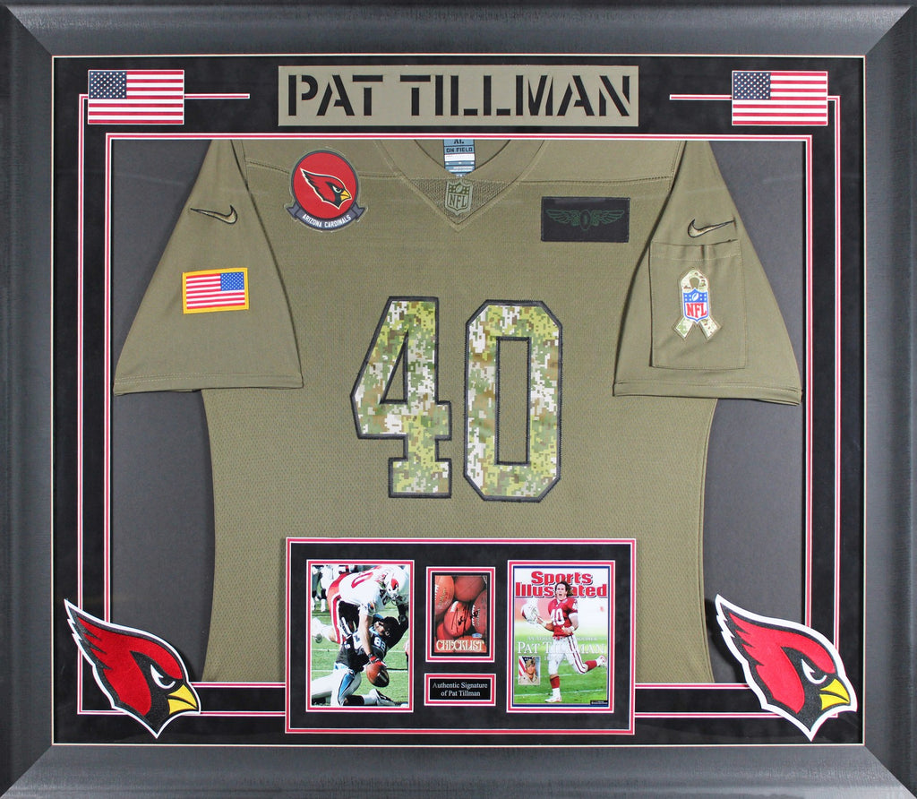 This Autographed 1998 Fleer Tradition Checklist #250 Framed Display has been Personally Signed by Pat Tillman of the Arizona Cardinals. This item is 100% Authentic to include a Certificate of Authenticity (COA) / hologram by JSA. The authenticity can be verified on JSA website. This item has been professionally framed to overall dimensions of approximately 36.5 x 445 inches.