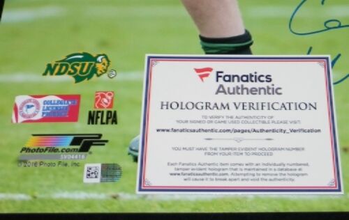 Carson Wentz, former star quarterback for the North Dakota State Bison, has hand signed this 16x20 photo at a private signing. This item comes with a serial-numbered hologram from Fanatics Authentic, one of the leaders in the industry. The authenticity can be verified online by entering the serial-number. A Fanatics Authentic information card is also included.Item pictured may not be the exact item you will receive. It will be similar quality, and we guarantee your satisfaction.