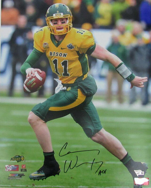 Carson Wentz North Dakota State Signed/Autographed 16x20 Photo. This photo is authenticated by Fanatics Authentic and includes their Tamper-proof Sticker and Certificate of Authenticity.