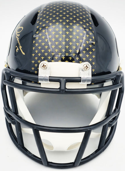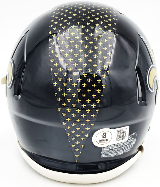 This is a New Orleans Saints Black 2022 Alternate Speed Mini Helmet that has been hand signed by Chris Olave. This item has been witnessed and certified authentic by Beckett Authentication (BAS) and comes with their tamper-proof witness sticker.