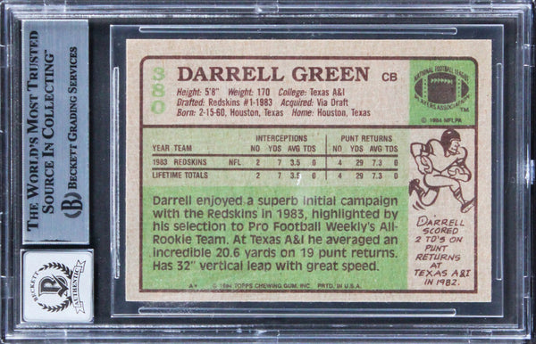 This Autographed Auto Graded Gem Mint 10! 1984 Topps #380 Card with the inscription of "HOF 08" has been Personally Signed by Darrell Green of the Washington Commanders. This item is 100% Authentic, it comes slabbed and authenticated by Beckett Authentication Services. We have multiples of this same item. While the photographs are representative of this item, the size and placement of the signature may vary. Each item is hand signed, therefore, each autograph is unique.