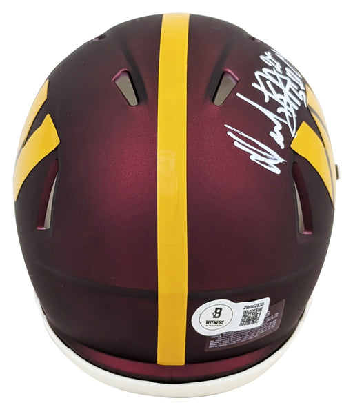 This Autographed Speed Mini Helmet W/ Uv Mirrored Back Acrylic Display Case with the inscription of "2x SB Champ" has been Personally Signed by Dexter Manley of the Washington Commanders. This item is 100% Authentic to include a hologram by Beckett Authentication Services. This item will come with an affixed Beckett Authentication Services (BAS) authentication sticker, which includes a scannable QR code to verify authenticity. Please note that Beckett no longer provides serial-numbered COA cards, and the attached BAS sticker will serve as the complete authentication for this item. This is a BAS Witnessed Protection Program item which means a Beckett Authentication Service representative was present when this item was being signed. We conducted an autograph signing with Dexter Manley where multiples of the same item were signed. While the photographs are representative of this item, the size, placement and strength of the signature may vary. Each item is hand signed, therefore, each autograph is unique. This item can be verified through BAS Witnessed.