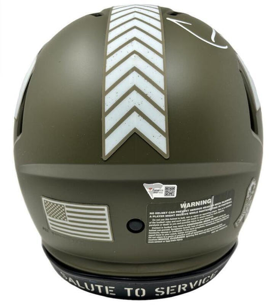 This Los Angeles Rams Salute To Service - Military Ribbon Edition - authentic speed helmet has been personally hand-signed by Cooper Kupp. It is officially licensed by the National Football League and comes with an individually numbered, tamper-evident hologram from Fanatics Authentic. To ensure authenticity, the hologram can be reviewed online. This process helps to ensure that the product purchased is authentic and eliminates any possibility of duplication or fraud.The autograph includes an official Fanatics hologram and matching COA for authenticity purposes.Comes with a tamper-evident hologram from Fanatics AuthenticatedOfficially licensed by the NFL MONEY BACK GUARANTEE! If for any reason you are not completely satisfied with the quality or authenticity of your purchase, we will gladly give you a full refund or exchange, whichever you prefer up to 30 days after purchase. Please feel free to e-mail us with any questions. Thank you. Authenticator Pre-Certified Authenticator: Fanatics Authenticated History of item: Cooper Kupp has signed this item in the presence of a representative from Fanatics. Describe how you came to possess this item: Super Sports Center is a fully authorized dealer for Upper Deck Authenticated as well as Mounted Memories and Steiner Sports. Other information about you and / or the item: Super Sports Center strives to deliver the most authentic in sports memorabilia from trusted companies like Mounted Memories, Steiner Sports and Upper Deck Authenticated. If it exists, we can find it for you!
