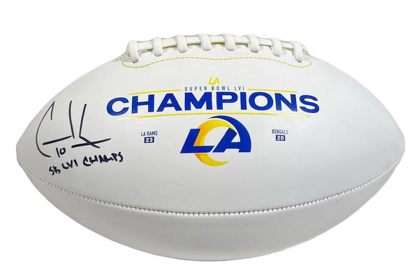 This super bowl lvi champs commemorative white panel football has been personally hand-signed by cooper kupp with the added inscription "sb lvi champs." it is officially licensed by the national football league and comes with an individually numbered, tamper-evident hologram from fanatics authentic. to ensure authenticity, the hologram can be reviewed online. this process helps to ensure that the product purchased is authentic and eliminates any possibility of duplication or fraud.the autograph includes an official fanatics hologram and matching coa for authenticity purposes.comes with a tamper-evident hologram from fanatics authenticatedofficially licensed by the nfl money back guarantee! if for any reason you are not completely satisfied with the quality or authenticity of your purchase, we will gladly give you a full refund or exchange, whichever you prefer up to 30 days after purchase. please feel free to e-mail us with any questions. good luck bidding!!! authenticator pre-certified authenticator: fanatics authenticated history of item: cooper kupp has signed this item in the presence of a representative from fanatics. describe how you came to possess this item: super sports center is a fully authorized dealer for upper deck authenticated as well as mounted memories and steiner sports. other information about you and / or the item: super sports center strives to deliver the most authentic in sports memorabilia from trusted companies like mounted memories, steiner sports and upper deck authenticated. if it exists, we can find it for you!