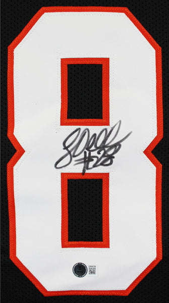 This Autographed Black Pro Style Framed Jersey has been Personally Signed by Corey Dillon of the Cincinnati Bengals. This item is 100% Authentic to include a hologram by Beckett Authentication Services. This item will come with an affixed Beckett Authentication Services (BAS) authentication sticker, which includes a scannable QR code to verify authenticity. Please note that Beckett no longer provides serial-numbered COA cards, and the attached BAS sticker will serve as the complete authentication for this item. This is a BAS Witnessed Protection Program item which means a Beckett Authentication Service representative was present when this item was being signed. We conducted an autograph signing with Corey Dillon where multiples of the same item were signed. While the photographs are representative of this item, the size, placement and strength of the signature may vary. Each item is hand signed, therefore, each autograph is unique. This item can be verified through BAS Witnessed. This item has been professionally framed to overall dimensions of approximately 32 x 37 inches. This is a X-Large sized, non-branded, custom-stitched Framed Jersey. This jersey will be framed to order, it will take approximately 3-4 business days from purchase date for it to ship.