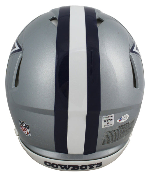 This Autographed Authentic Proline F/S Speed Helmet has been Personally Signed by Jason Witten of the Dallas Cowboys. This item is 100% Authentic to include a Certificate of Authenticity (COA) / hologram by Beckett Authentication Services. This is a BAS Witnessed Protection Program item which means a Beckett Authentication Service representative was present when this item was being signed. This is a stock item. We conducted an autograph signing with Jason Witten and we have several of these available. The one you will receive will be of equal quality to the one pictured. This item can be verified through BAS Witnessed.