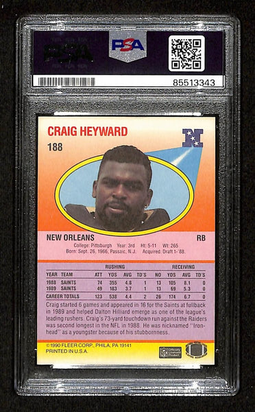 Craig Heyward Signed/Autographed 1990 Fleer #188 New Orleans Saints. This card is authenticated by PSA/DNA and is encapsulated in their Tamper-proof Plastic Case.