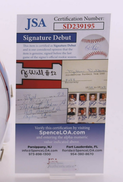 Riddell Florida Gators speed mini helmet has been hand-signed by DJ Lagway.The autograph(s) includes an official James Spence Authentication (JSA) "Signature Debut" hologram and COA. "Signature Debut" is the autographed memorabilia equivalent to a rookie card. The JSA definition of a "Signature Debut" is as follows: "Any item that is autographed and received by JSA prior to the last game of the signer's official rookie season.Authentication: JSA COA