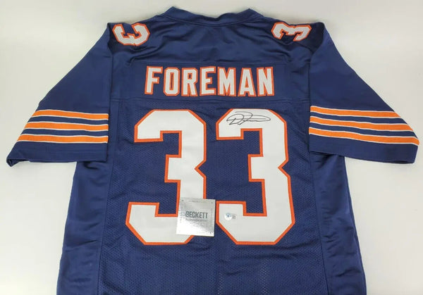 This autographed jersey has been personally hand-signed by D'Onta Foreman of the Chicago Bears.This autograph is certified by Beckett Authentication Services (BAS) Witness Certification. That means that a Beckett representative was present when this item was signed. It comes with the numbered authentication hologram with a QR code that verifies the authentication on the Beckett website.Custom on-field style jerseys are a more affordable option for autograph seekers. These jerseys do not have any brand name or tags and are made in the Philippines. They feature stitched on names and numbers and are made to look very similar to the on-field jerseys that the players wear. These custom jerseys are very commonly used in the memorabilia industry.