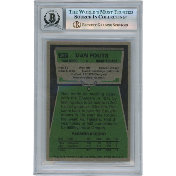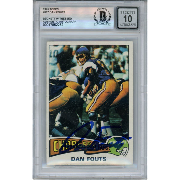 The number in the listing title is just an inventory sku for our records and is not the authentication number. The item pictured is the exact item you will receive, please see photos for condition. This is a San Diego Chargers Slabbed 1975 Topps #367 Trading Card that was personally autographed by Dan Fouts. Includes a certificate of authenticity from Beckett Authentication Services (BAS) and Denver Autographs.FREE SHIPPING within the USA on orders over $10!