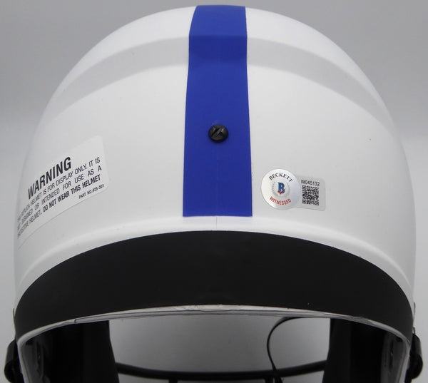 This is an Alternate White Full Size Speed Replica Helmet that has been hand signed by Daniel Jones. This item has been certified authentic by Beckett Authentication (BAS) and comes with their tamper-proof QR Code hologram.