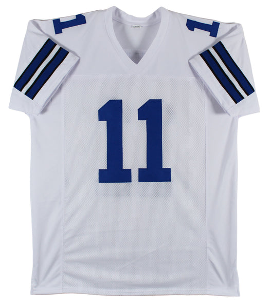 This Autographed White Pro Style Jersey with the inscription of ""SB XII Champs"" has been Personally Signed by Danny White of the Dallas Cowboys. This item is 100% Authentic to include a hologram by Beckett Authentication Services. This item will come with an affixed Beckett Authentication Services (BAS) authentication sticker, which includes a scannable QR code to verify authenticity. Please note that Beckett no longer provides serial-numbered COA cards, and the attached BAS sticker will serve as the complete authentication for this item. This is a BAS Witnessed Protection Program item which means a Beckett Authentication Service representative was present when this item was being signed. We conducted an autograph signing with Danny White where multiples of the same item were signed. While the photographs are representative of this item, the size, placement and strength of the signature may vary. Each item is hand signed, therefore, each autograph is unique. This item can be verified through BAS Witnessed. This is a X-Large sized, non-branded, custom-stitched Jersey.