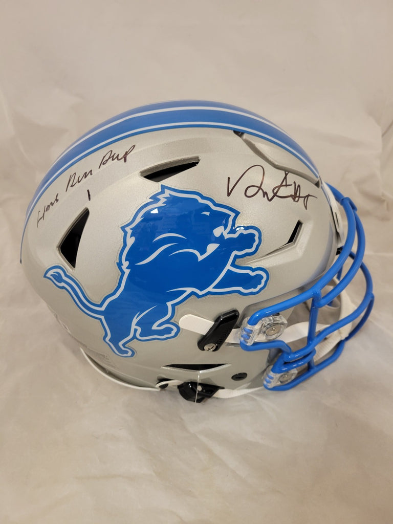 DAVID MONTGOMERY AUTOGRAPHED / SIGNED DETROIT LIONS FULL SIZE SPEEDFLEX AUTHENTIC HELMET"LIONS RUN DEEP" INSCRIPTIONBECKETT QR CODE HOLOGRAM COA