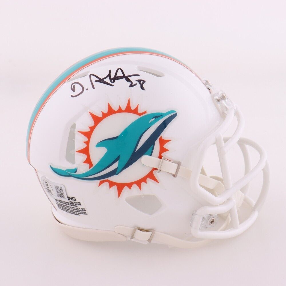 Riddell Miami Dolphins speed mini helmet. Hand-signed by De'Von Achane.The lot / autograph(s) includes an official Beckett Authentication Services serially numbered hologram for authenticity purposes. The signing of this item was witnessed by Beckett.Authentication: Beckett Hologram