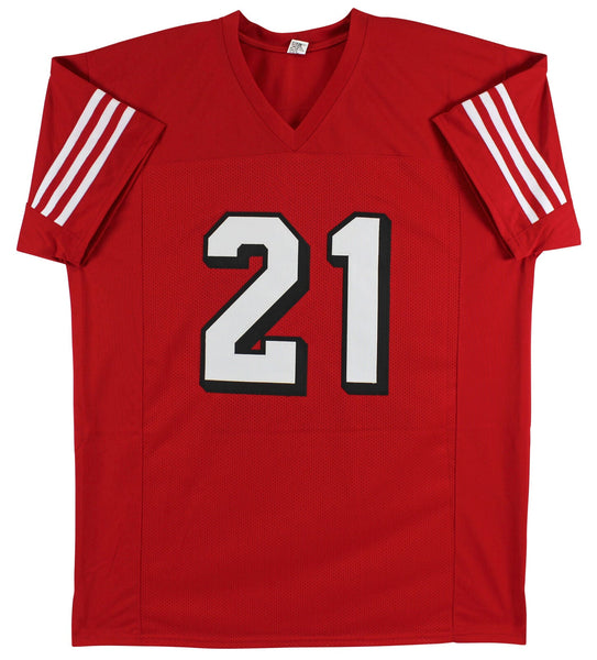 This Autographed w/Drop Shadow Red Jersey has been Personally Signed by Deion Sanders of the San Francisco 49ers. This item is 100% Authentic to include a hologram by Beckett Authentication Services. This item will come with the new Beckett Authentication hologram that has a scannable QR code rather than the traditional COA. If you would like to have a COA, you are welcome to reach out to Beckett for a printed certification once you receive your item. This is a BAS Witnessed Protection Program item which means a Beckett Authentication Service representative was present when this item was being signed. We conducted an autograph signing with Deion Sanders where multiples of the same item were signed. While the photographs are representative of this item, the size, placement and strength of the signature may vary. Each item is hand signed, therefore, each autograph is unique. This item can be verified through BAS Witnessed. This is a X-Large sized, non-branded, custom-stitched Jersey.