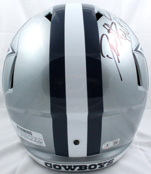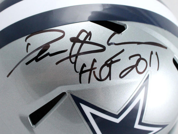 Deion Sanders Autographed Dallas Cowboys F/S Speed Helmet w/HOF-Beckett W Hologram *Black This is a hand autograph of Deion Sanders of the Dallas Cowboys on a Riddell Football Full Size Speed Replica Helmet. Inscribed with HOF. This item has a Beckett Witness Authentication, which comes with a Beckett numbered hologram and a QR code for verification. You can view this item on the Beckett Authentication website and it shows when and where the item was signed. It was signed either at a public autograph appearance or a private signing. This is a stock photo of the item. Although you may not receive this exact item, the item you receive is virtually identical and brand new in great shape.