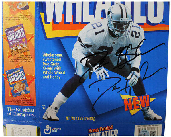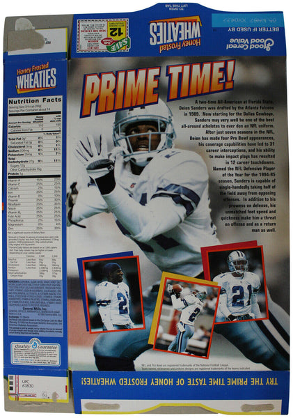 Deion Sanders Autographed Honey Frosted Wheaties Box Flattened BAS 34581 The number in the listing title is just an inventory sku for our records and is not the authentication number. The item pictured is a stock photo unless otherwise noted. This is a Wheaties Honey Frosted cerreal box which has been opened and flattened that was personally autographed by Deion Sanders. Includes a certificate of authenticity from Beckett Authentication Services (BAS) and Denver Autographs.