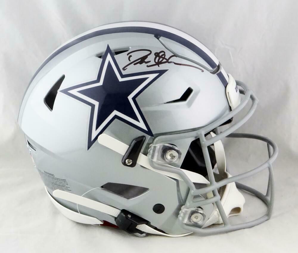 Deion Sanders Autographed Dallas Cowboys F/S SpeedFlex Helmet - Beckett W Auth *Front This is a hand autograph of Deion Sanders of the Dallas Cowboys on a Riddell Football Full Size SpeedFlex Authentic Helmet. This item has a Beckett Witnessed Authentication, which comes with a numbered sticker and a matching Beckett Certificate of Authenticity. You can view this item on the Beckett Authentication website, it shows when and where the item was signed. It was signed either at a public autograph appearance or a private signing. This is a stock photo of the item. Although you may not receive this exact item, the item you receive is virtually identical and brand new in great shape.
