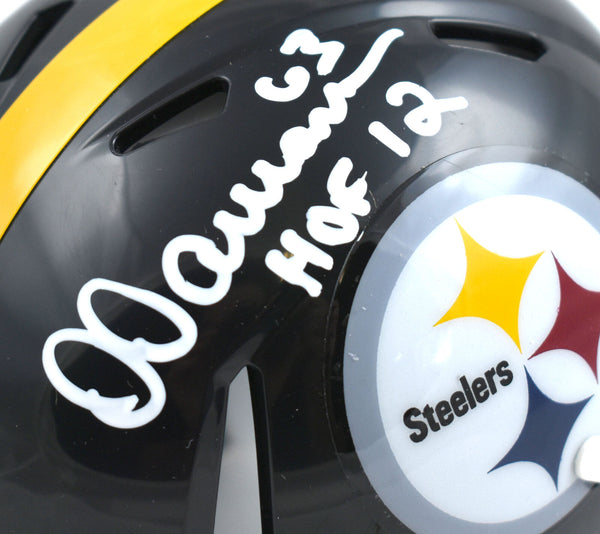 This is a hand autograph of Dermontti Dawson of the Pittsburgh Steelers on a Riddell Football Speed Mini Helmet. Inscribed HOF. This item has a Beckett Witnessed Authentication, which comes with a numbered hologram and a QR code for verification. You can view this item on the Beckett Authentication website and it shows when and where the item was signed. It was signed either at a public autograph appearance or a private signing. This is a stock photo of the item. Although you may not receive this exact item, the item you receive is virtually identical and brand new in great shape. This is a hand autograph of Dermontti Dawson of the Pittsburgh Steelers on a Riddell Football Speed Mini Helmet. Inscribed HOF. This item has a Beckett Witnessed Authentication, which comes with a numbered hologram and a QR code for verification. You can view this item on the Beckett Authentication website and it shows when and where the item was signed. It was signed either at a public autograph appearance or a private signing. This is a stock photo of the item. Although you may not receive this exact item, the item you receive is virtually identical and brand new in great shape.