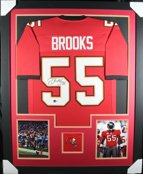 DERRICK BROOKS AUTOGRAPHED & PROFESSIONALLY FRAMED PRO-STYLE JERSEY(Occasionally our own stock pictures are used at times due to quantity of framing, all frames will look identical as the one pictured)THE FRAMED JERSEY MEASURES 35"x 44" & COMES WITH THE FOLLOWING:-UV Protected Acrylic-Triple Acid Free Team Colored Matting-2 High Quality 8"x10" Photos-Team LogoEvery framed autographed jersey is accompanied with a tamper-proof hologram on the signed part of the jersey from one of the main authenticators in the industry (JSA, Beckett, PSA, etc.) and can be verified on their corresponding websites to prove authenticity.