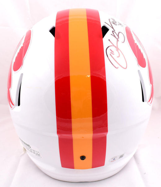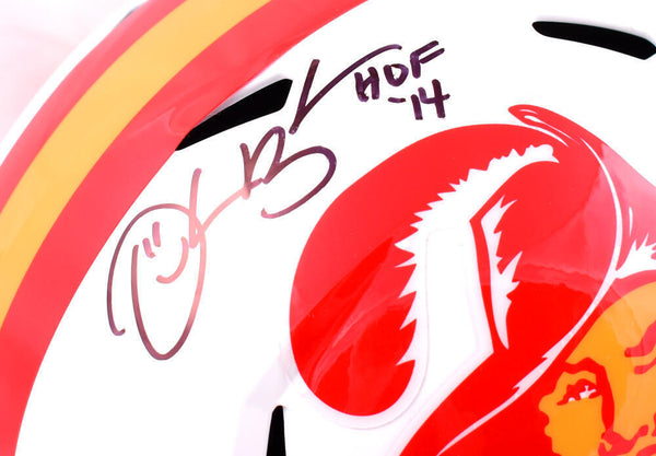 Derrick Brooks Autographed Tampa Bay Buccaneers 76-96 F/S Speed Helmet w/HOF-Beckett W Hologram *Black This is a Derrick Brooks of the Tampa Bay Buccaneers hand autographed Riddell football 76-96 Speed full size replica helmet inscribed with "HOF". This item has a Beckett Witnessed Authentication, which comes with a numbered sticker hologram and a QR code for verification. You can view this item on the Beckett Authentication website, it shows when and where the item was signed. It was signed either at a public autograph appearance or a private signing. This is a stock photo of the item. Although you may not receive this exact item, the item you receive is virtually identical, brand new, and in great shape.
