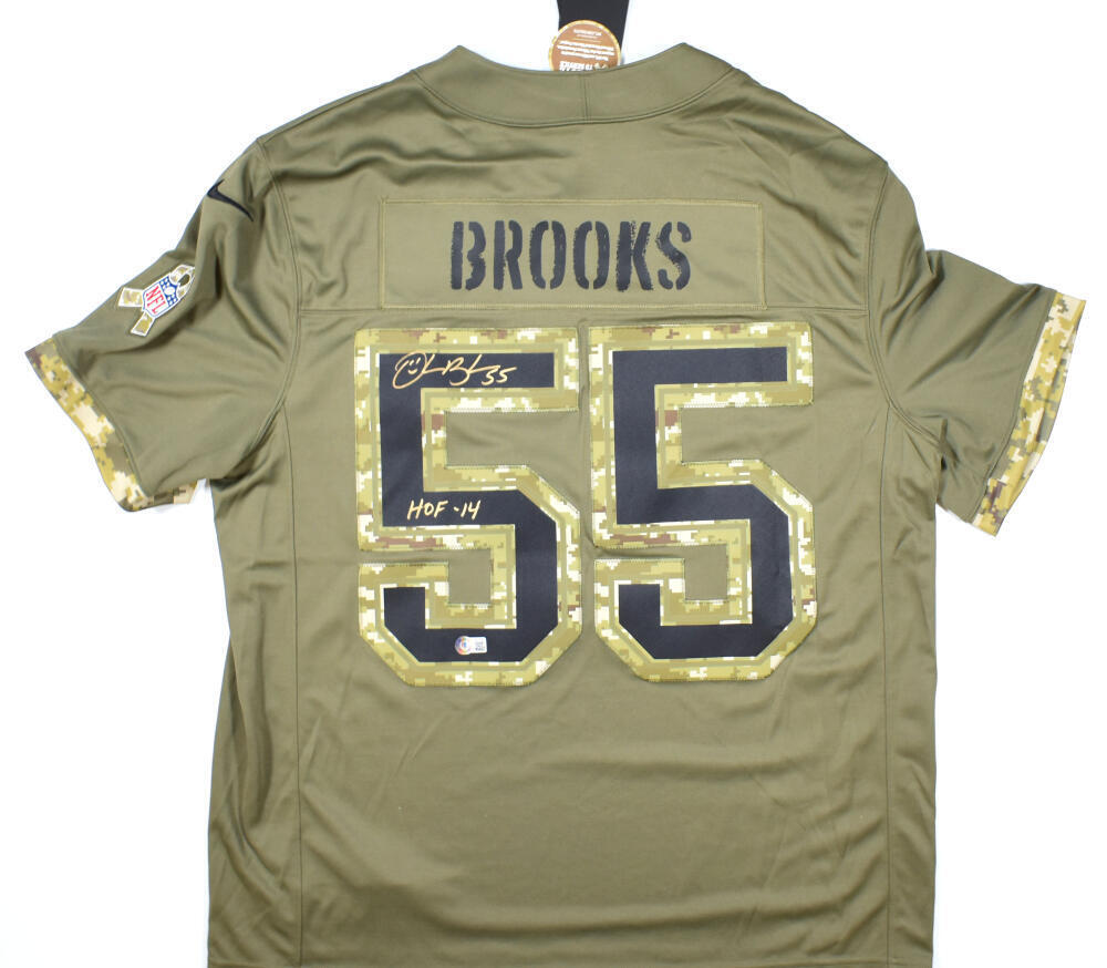 Derrick Brooks Autographed Tampa Bay Buccaneers Salute To Service Limited Player Jersey w/HOF-Beckett Hologram *Gold This is a Derrick Brooks of the Tampa Bay Buccaneers hand autographed Nike Salute To Service Limited Player Jersey. Inscribed HOF. This item has a Beckett Authentication, which comes with a Beckett numbered hologram and a QR code for verification. You can view this item on the Beckett website. It was signed either at a public autograph appearance or a private signing. This is a stock photo of the item. Although you may not receive this exact item, the item you receive is virtually identical, brand new, and in great shape. Jersey size is XL.