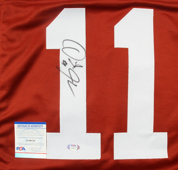 Custom on-field style jersey. Everything is sewn on, size XL. Hand-signed by Derrick Johnson.The lot / autograph(s) includes an official PSA/DNA hologram and matching COA for authenticity purposes. The signing of this item was witnessed by PSA.Authentication: PSA COA