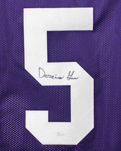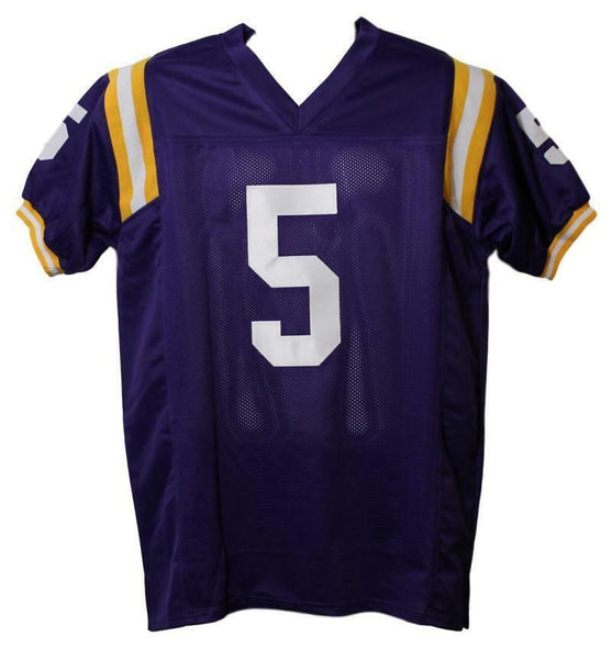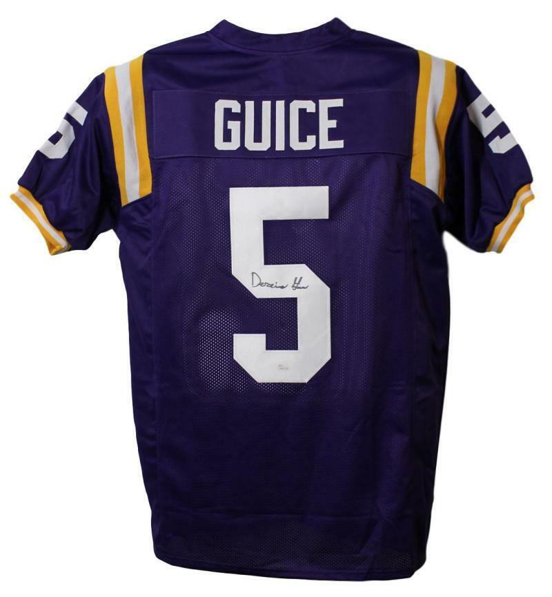 Derrius Guice Autographed/Signed LSU Tigers XL Purple Jersey JSA 21988 This is a custom size XL purple jersey with sewn on name and numbers that was personally autographed by Derrius Guice.This jersey includes a certificate of authenticity from James Spence Authentication (JSA) and Denver Autographs.