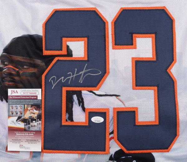 Custom on-field style jersey. Everything is sewn on, size XL. Hand-signed by Devin Hester.The lot / autograph(s) includes an official James Spence Authentication (JSA) hologram and matching COA for authenticity purposes. The signing of this item was witnessed by JSA.Authentication: JSA COA