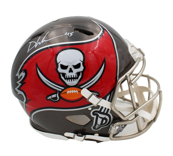 A Tampa Bay Buccaneers Custom Speed Authentic NFL Helmet hand signed by Devin White. The item and signature are in excellent condition. Devin is a linebacker for the Tampa Bay Buccaneers (NFL). He played college football at LSU, and was drafted by the Buccaneers fifth overall in the 2019 NFL Draft. AUTHENTICATION: The item is accompanied by a Certificate of Authenticity - Serial Numbered and Databased Hologram