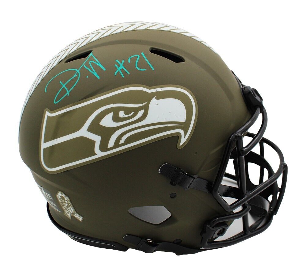 A Seattle Seahawks Speed Authentic Salute To Service NFL Helmet hand signed by Devon Witherspoon. The item and signature are in excellent condition. Devon Witherspoon was drafted in the 2023 NFL draft by the Seattle Seahawks. AUTHENTICATION: Your item is tagged with a SmarTag powered by Prova Technology, which gives you digital access to your items authentication records, which includes a proof picture from the signing.