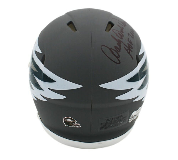 A Philadelphia Eagles Speed AMP NFL Mini Helmet hand signed by Dick Vermeil. The item and signature are in excellent condition. In addition to signing his name, Dick also inscribed " HOF 2022'' on the item. Dick had a very successful Football Coaching career. He lead teams like the Philadelphia Eagles, St. Louis Rams, Kansas City Chiefs, UCLA Bruins with losing records to victory, winning the Rose Bowl, Playoffs & Super Bowls. He has been Coach of the Year several times and was inducted into the Pro Football Hall of Fame in 2022. AUTHENTICATION: The item is accompanied by a Dick Vermeil Exclusive Certificate of Authenticity - Dick Vermeil Exclusive Serial Numbered & Databased Hologram - Picture of Dick from the signing