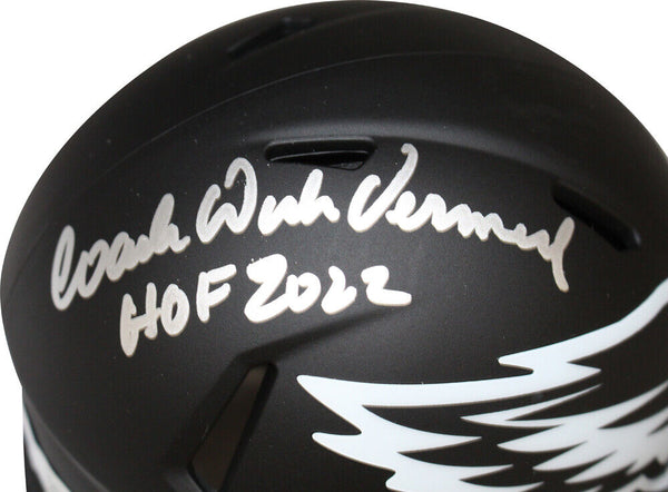 Dick Vermiel Signed Philadelphia Eagles Eclipse HOF Mini Beckett 40629 The number in the listing title is just an inventory sku for our records and is not the authentication number. The item pictured is a stock photo unless otherwise noted. This is a Philadelphia Eagles Eclipse Mini Helmet that was personally autographed by Dick Vermiel with "HOF" inscription. Includes a certificate of authenticity from Beckett Authentication Services (BAS) and Denver Autographs.