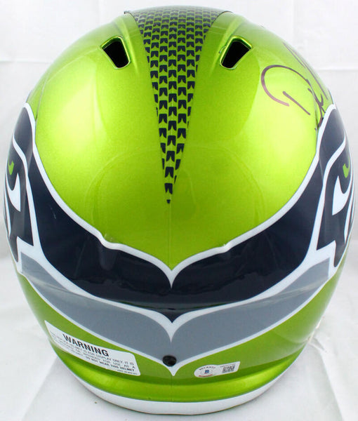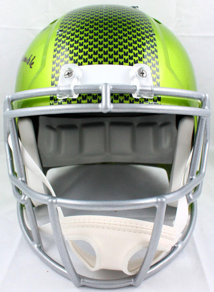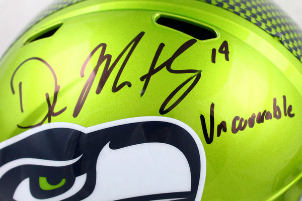 DK Metcalf Autographed Seattle Seahawks F/S Flash Speed Helmet w/Insc.-Beckett W Hologram *Black This is a hand autograph of DK Metcalf of the Seattle Seahawks on a Riddell Football Full Size Flash Speed Replica Helmet. Inscribed Uncoverable. This item has a Beckett Witnessed Authentication, which comes with a numbered sticker hologram and a QR code for verification. You can view this item on the Beckett Authentication website and it shows when and where the item was signed. It was signed either at a public autograph appearance or a private signing. This is a stock photo of the item. Although you may not receive this exact item, the item you receive is virtually identical and brand new in great shape.