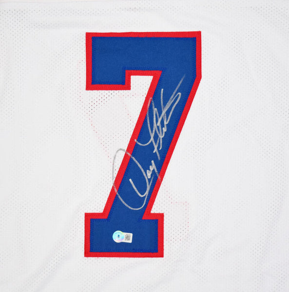 Doug Flutie Autographed White Pro Style Jersey-Beckett W Hologram *Silver THIS IS NOT AN NFL JERSEY. THIS HAS NO TAGS, NO LOGOS, NO EMBLEMS. This is a Doug Flutie of the Buffalo Bills hand autographed custom made (non name brand) authentic style (stitched letters and numbers) jersey. This item has a Beckett Witnessed Authentication, which comes with a numbered hologram and a QR code for verification. You can view this item on the Beckett Authentication website. It was signed either at a public autograph appearance or a private signing. This is a stock photo of the item. Although you may not receive this exact item, the item you receive is virtually identical, brand new, and in great shape. Jersey size is XL.
