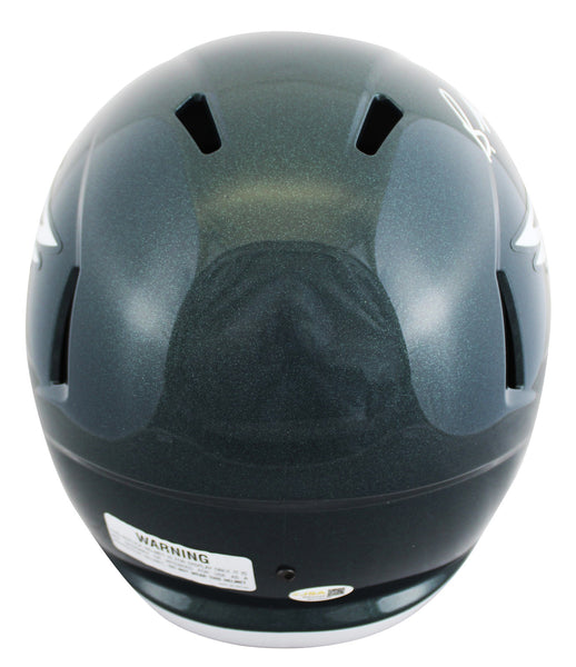 This Autographed Riddell Full Size Speed Rep Helmet has been Personally Signed by Brandon Graham of the Philadelphia Eagles. This item is 100% Authentic to include a hologram by James Spence Authentication Services. This item will come with an affixed James Spence Authentication Services (JSA) authentication sticker, which includes a scannable QR code to verify authenticity. Please note that JSA no longer provides serial-numbered COA cards with witnessed items, and the attached JSA sticker will serve as the complete authentication for this item. This is a JSA Witnessed Protection Program item which means a JSA representative was present when this item was being signed. We conducted an autograph signing with Brandon Graham where multiples of the same item were signed. While the photographs are representative of this item, the size, placement and strength of the signature may vary. Each item is hand signed, therefore, each autograph is unique. This item can be verified through JSA Witness.