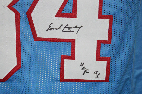 Earl Campbell Autographed/Signed Pro Style Blue XL Jersey HOF Beckett 35503 The number in the listing title is just an inventory sku for our records and is not the authentication number. The item pictured is a stock photo unless otherwise noted. This is a custom pro style blue XL jersey with sewn on name and numbers that was personally autographed by Earl Campbell. Includes a certificate of authenticity from Beckett Authentication Services (BAS) and Denver Autographs.