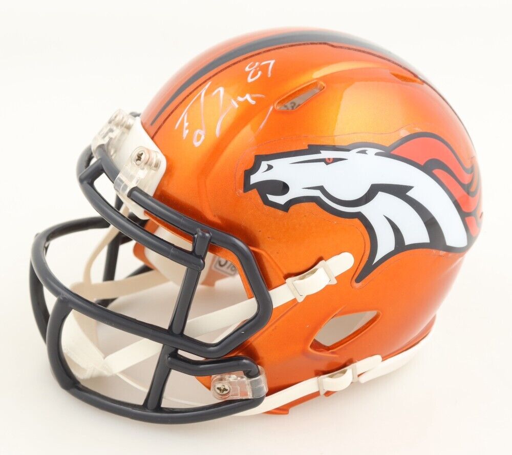 Riddell Denver Broncos Flash Alternate Speed mini helmet. Hand-signed by Ed McCaffrey.The autograph includes an official James Spence Authentication (JSA) hologram and matching COA for authenticity purposes.Authentication: JSA COA